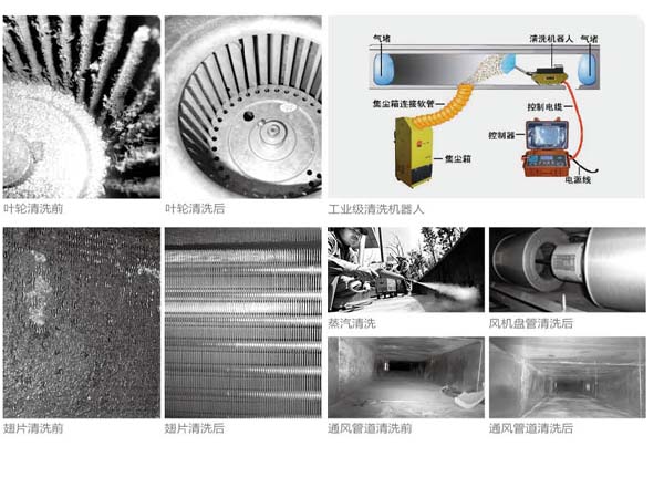 隨著空調使用年限的增加,通風系統內 (管道、風機盤管的翅片、渦輪電機的扇 (管道、風機盤管的翅片、渦輪電機的扇葉、新風機組換熱板翅片、空氣過濾器等)逐漸堆積起了大量的污染物,既增加了設備的負荷又浪費了電力還給室內的空氣帶來了極大的污染。這些灰塵中有大量有害的細菌、霉菌、軍團菌和病毒,嚴重威脅我們的健康,《2002年世界衛生報告》將室內空氣污染列為人類健康十大危害之一。我們在享受舒適的同時它也給我們帶來了污染和危害。